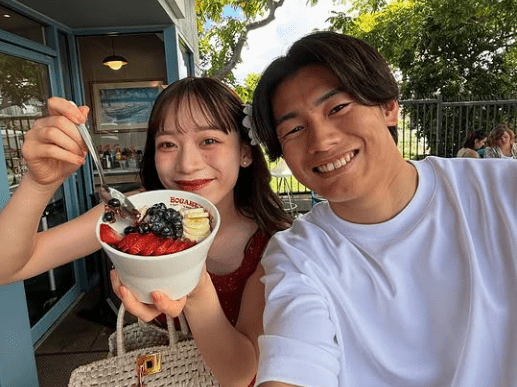 上田綺世選手と妻の由布菜月さんの出会いは、友人の紹介。